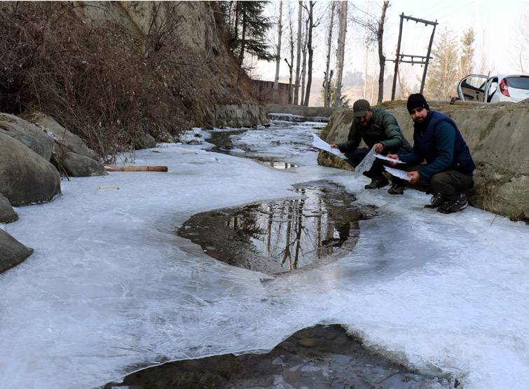 इतनी सर्द रात झेलने के बाद डल झील की शक्ल बर्फ के मैदान जैसी बन गई है. किनारों पर तो बर्फ पहले से ही जमी थी. बीच के पानी में भी बर्फ सिल्लियां तैरती दिख रही हैं. झील में नावें चल तो रही हैं, लेकिन बर्फ से जूझते हुए, बर्फ को तोड़ते हुए जो नावें किनारे पर खड़ी थीं वो वहीं की वहीं जम गईं. बर्फ ने नावों को चारों तरफ से जकड़ लिया है. नाव निकालने के लिए एक इंच मोटी बर्फ की तोड़नी पड़ रही है. अनंतनाग के कोकरनाग में भी पारा माइनस 8 डिग्री के करीब है. चंद रोज पहले तेज धार से बहने वाला दरिया इतनी सर्दी में सहम कर जम गया. नीचे से ऊपर तक दरिया का पूरा पानी बर्फ बन गया है. गांव के लोग इस पर चलहकदमी कर रहे हैं.
