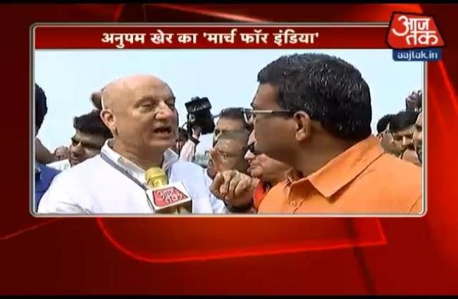 मार्च शुरू करने से पहले अनुपम ने कहा, किसी को हक नहीं कि देश को असहिष्णु कहे. हमें किसी दूसरे देश से राष्ट्रभक्ति सीखने की जरूरत नहीं है. हो सकता है कि जो लोग देश को असहिष्णु कह रहे हों वो कम राष्ट्रभक्त हों.