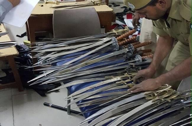 राजकोट के एक गांव के पास इंडियन पैलेस होटल के स्टोर से पुलिस ने 257 हथियार बरामद किए.