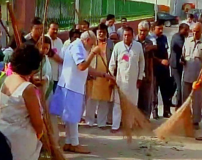 प्रधानमंत्री नरेंद्र मोदी ने वाल्मीकि बस्ती में लगाई झाड़ू