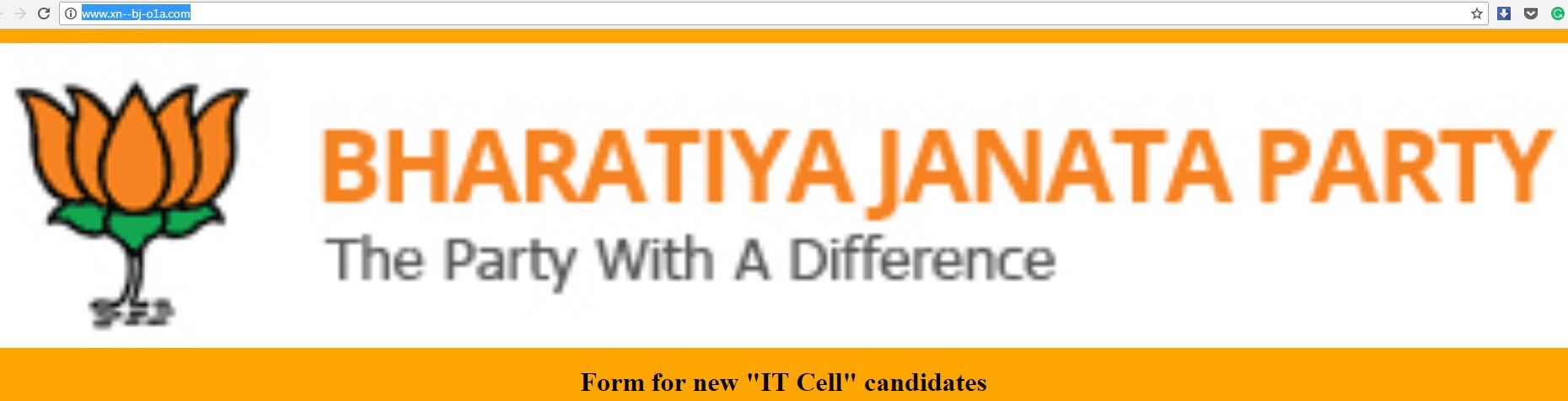 खास बात ये है कि इस मैसेज में जिस वेबसाइट का जिक्र किया जा रहा है वो है www.bjƿ.com जो देखने से किसी को भी बीजेपी पार्टी की वेबसाइट लग सकती है. हालांकि बीजेपी की असली वेबसाइट www.bjp.org है. लेकिन जब आप इस लिंक पर क्लिक करेंगे तो ये आपको बीजेपी की वेबसाइट नहीं बल्कि एक दूसरे वेब पेज पर ले जाएगा. आप देखेंगे कि ब्राउजर में एड्रेस खुद ब खुद बदल कर http://www.xn--bj-o1a.com/ हो जाएगा.