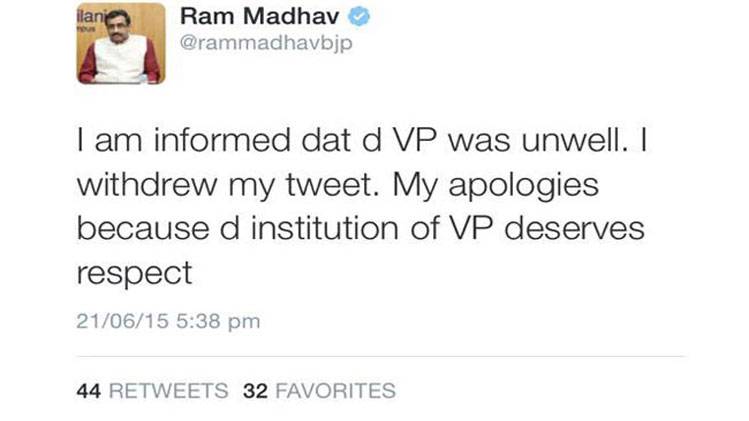 बीजेपी नेता राम माधव ने उस दौरान राज्यसभा टीवी पर प्रसारण को लेकर भी हामिद अंसारी पर सवाल उठाए थे. हालांकि, बाद में इस पर खेद प्रकट किया था.