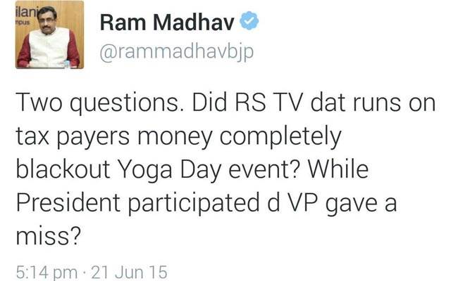 21 जून 2015 को पहला अंतरराष्ट्रीय योग दिवस मनाया गया. पीएम मोदी ने राजपथ पर हजारों लोगों के साथ योग किया. तत्कालीन राष्ट्रपति प्रणब मुखर्जी ने भी योग किया. मगर उपराष्ट्रपति होते हुए हामिद अंसारी योग दिवस कार्यक्रम में शामिल नहीं हुए. बीजेपी के राष्ट्रीय महासचिव राम माधव ने इस पर हामिद अंसारी की आलोचना भी की. हालांकि, उन्होंने बाद में हामिद अंसारी की तबीयत खराब होने की जानकारी होने की दलील देते हुए अपना ट्वीट डिलीट कर लिया था.