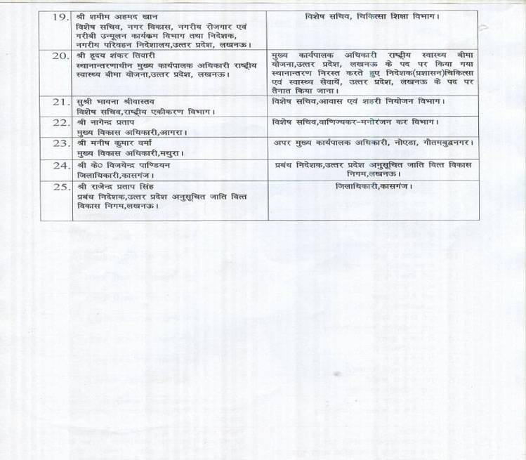 उत्तर प्रदेश की योगी सरकार ने एक और बड़ा प्रशासनिक फेरबदल करते हुए सूबे के 25 आईएएस अधिकारियों का तबादला किया है. बीते एक महीने में ये तीसरा मौका है जब बड़ी संख्या में प्रशासनिक बदलाव किए गए हैं. यूपी में इससे पहले 84 आईएएस 54 आईपीएस अफसरों का तबादला किया गया था.