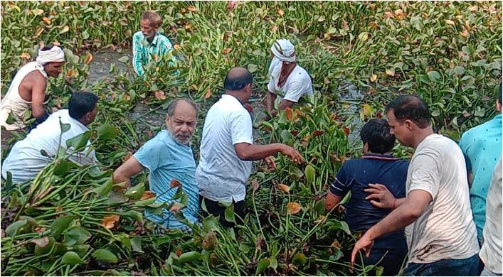 अपने गोद लिए गांव डिंगवाही में सोमवार को डीएम अनुराग पहुंचे थे. करीब चार घंटे कमर तक पानी में खड़े रहकर उन्होंने जलकुंभी को हटाया. दिनभर में 50 तालाबों में सालों से जमी जलकुंभी को हटाकर तालाबों की सफाई कराई गई.