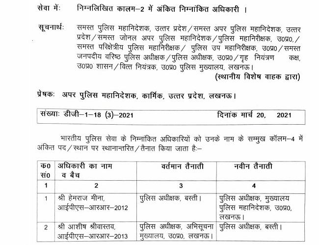 यूपी के सीएम योगी आदित्यनाथ की कर्मभूमि गोरखपुर मंडल के बस्ती जिले के पुलिस अधीक्षक को वहां से हटा दिया गया है. शासन ने बस्ती के पुलिस अधीक्षक (एसपी) हेमराज मीणा का तबादला कर दिया है. मीणा को पुलिस महानिरीक्षक मुख्यालय से अटैच कर दिया गया है. हेमराज मीणा की जगह आशीष श्रीवास्तव को बस्ती जिले का नया एसपी बनाया गया है.