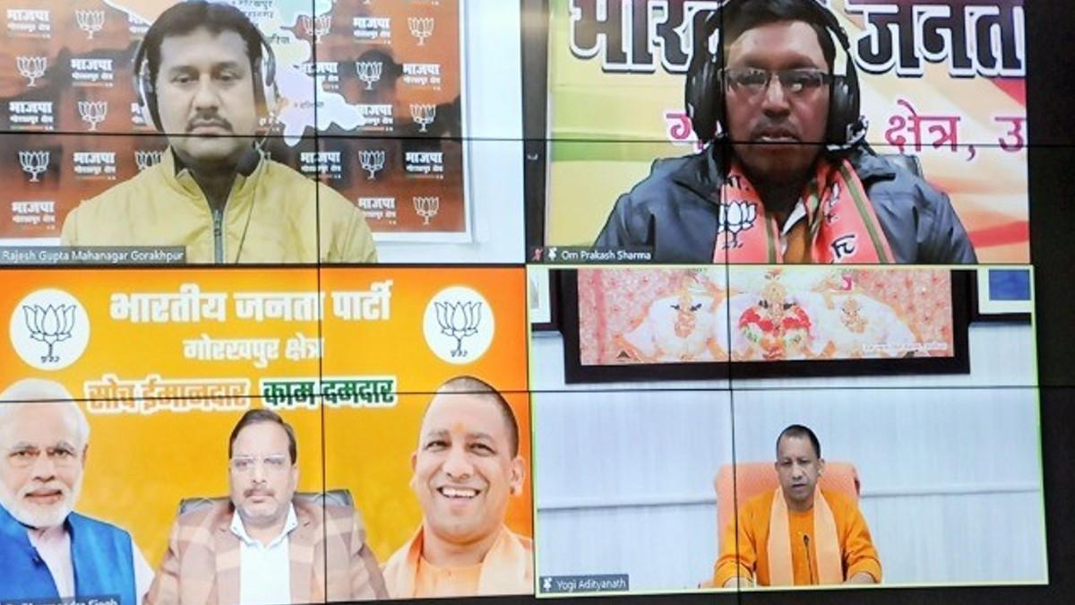 यूपी के मुख्यमंत्री योगी आदित्यनाथ ने भाजपा के विभिन्न प्रकोष्ठों के पदाधिकारियों के साथ सोमवार को वर्चुअल मीटिंग की. उन्होंने कहा कि पंडित दीनदयाल उपाध्याय के सपनों एवं उद्देश्यों को सार्थक बनाने में महानगर एवं जिला स्तर पर कार्य कर रहे विभिन्न मोर्चा एवं प्रकोष्ठ का योगदान है. साथ ही सरकार के कार्यों का उल्लेख करने एवं समाज तक इसे पहुंचाने में भी उनकी सार्थक भूमिका है. योगी आदित्यनाथ ने अपील की कि हम सभी कार्यकर्ता जनता को साथ लेकर इस राष्ट्र निर्माण एवं उत्तर प्रदेश के नवनिर्माण में योजनाबद्ध ढंग से आगे बढ़ें.