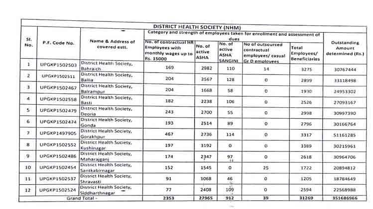 कर्मचारी भविष्य निधि संगठन (EPFO) ने स्वास्थ्य विभाग के कर्मचारियों के हित को अनदेखी के मामले में पूर्वांचल के 19 जिलों के मुख्य चिकित्साधिकारियों (CMO) के बैंक खातों को सीज कर लिया है.
