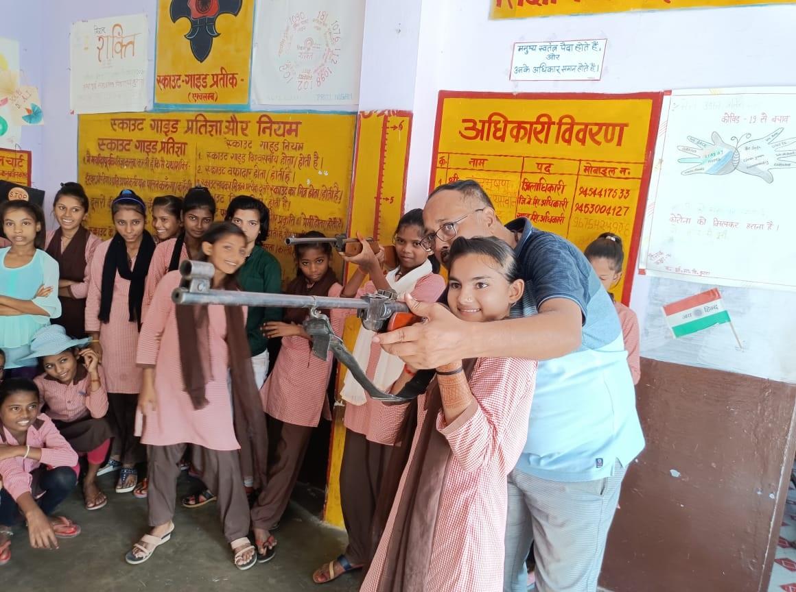 छात्राओं को बंदूक चलाना सिखाने की यह अनोखी पहल जिले के एक सामाजिक संगठन के सहयोग से स्कूल की टीचरों ने की. जिले में कुरारा ब्लॉक के कन्या जूनियर हाई स्कूल में कक्षा 1 से 8वीं तक की छात्राओं को बंदूक चलाना सिखाया गया. बंदूक चलाने की ट्रेनिंग के दौरान कई छात्राओं ने तो टारगेट पर सटीक निशाना लगाकर सभी को चौंका दिया.
