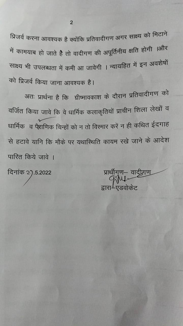 मनीष यादव ने मांग की है कि ईदगाह के सर्वेक्षण के लिए तीन सदस्यीय कोर्ट कमिश्नर का पैनल नियुक्त किया जाए. आवेदन में ईदगाह में बंद कमरों को खोलने, इलाके की सफाई और सर्वे के दौरान पुलिस सुरक्षा के इंतजाम करने की भी मांग की गई है.