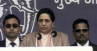 मायावती ने बीजेपी के प्रधानमंत्री पद के उम्मीदवार नरेन्द्र मोदी पर हमला करते हुए कहा कि जो व्यक्ति लगभग छह करोड़ आबादी वाले गुजरात में दंगे नहीं रुकवा सकता वह पूरे देश में आपसी भाईचारा और एकता कैसे पैदा कर सकता है. उन्होंने कहा कि मोदी अपनी चुनावी रैलियों में जिस तरह लुभावने वादे कर रहे हैं, उन्हें देखते हुए उन पर यह पुरानी कहावत काफी हद तक सही बैठती है जो गरजते हैं, वे बरसते नहीं. मोदी पहले अपने शासन वाले राज्य गुजरात पर ध्यान दें जहां कैग की रिपोर्ट के मुताबिक हर तीसरा बच्चा कुपोषित है. मायावती ने कहा कि केन्द्र में तो बीजेपी ने संविधान की समीक्षा की आड़ में दलितों और पिछड़ों का आरक्षण खत्म करने की साजिश रची थी. बीएसपी ने आंदोलन करके उनकी साजिश को कामयाब नहीं होने दिया. केन्द्र में बीजेपी के शासनकाल में अनेक गम्भीर आतंकवादी वारदात हुई. उत्तर प्रदेश में तो इसी पार्टी की सरकार के कार्यकाल में अयोध्या में विवादित ढांचा गिराकर साम्प्रदायिक तनाव पैदा किया गया. उन्होंने कहा कि भ्रष्टाचार खत्म करने के दावे करने वाले मोदी ने अपने राज्य में भ्रष्टाचार रोकने वाली संस्था लोकायुक्त को नहीं बनने दिया. जो कमजोर संस्था बनी वह अदालत के दखल के कारण बनी. इससे भ्रष्टाचार नहीं रुकेगा. बीएसपी नेता ने कहा कि मोदी ने अपने राजनीतिक स्वार्थ के लिये वल्लभभाई पटेल स्मारक का निर्माण कराने और स्टैच्यू आफ यूनिटी बनवाने का ऐलान किया और हाल में पटेल की 63वीं पुण्यतिथि के मौके पर वरिष्ठ नेताओं और अन्य लोगों की दौड़ करायी जो वोट लेने का कोरा नाटक मात्र है. मायावती ने केन्द्र में कांग्रेस के नेतृत्व में चल रही संप्रग सरकार पर भी हमले किये. उन्होंने कहा कि केन्द्र की हर प्रकार की गलत नीतियों के कारण पूरे देश में गरीब, मजदूर समेत हर वर्ग परेशान है और भ्रष्टाचार चरम सीमा पर पहुंच गया है. ढुलमुल विदेश नीति के कारण देश की सीमाएं भी पूरी तरह सुरक्षित नहीं हैं.