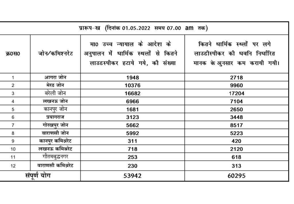 आधिकारिक आंकड़ों के मुताबिक, बरेली जोन से 16,682 लाउडस्पीकर हटाए गए हैं. जबकि 17,204 लाउडस्पीकरों की आवाज को कम किया गया है. वाराणसी कमिश्नरी के तहत आने वाले क्षेत्र से 230 लाउड स्पीकर हटाए गए हैं. जबकि 313 की आवाज कम की गई है.