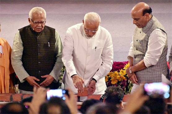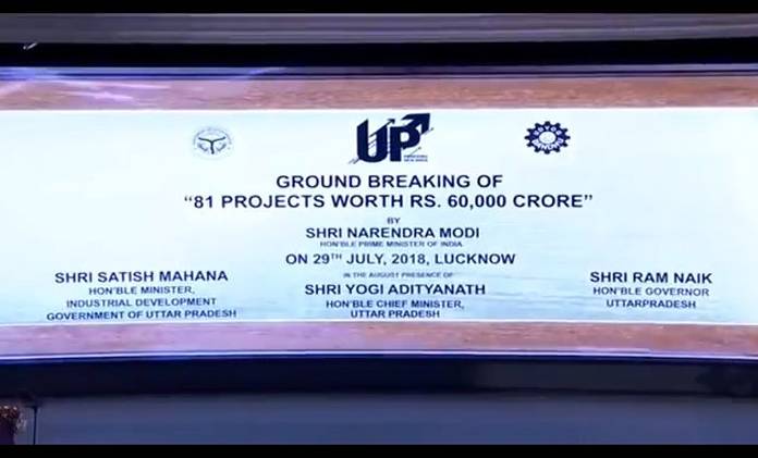 प्रधानमंत्री नरेन्द्र मोदी ने लखनऊ में उत्तर प्रदेश के लिए 60 हजार करोड़ रुपये की 81 परियोजनाओं का शिलान्यास किया. कार्यक्रम में उनके साथ गृह मंत्री राजनाथ सिंह, उत्तर प्रदेश के गवर्नर राम नाइक और सूबे के मुख्यमंत्री योगी आदित्यनाथ भी मौजूद थे. इस कार्यक्रम में उद्योगपति मंगलम बिड़ला, गौतम अडानी समेत कई उद्योगपति भी शामिल हुए. इस महीने की यूपी में पीएम मोदी की यह छठी यात्रा है और लखनऊ की दूसरी यात्रा है.