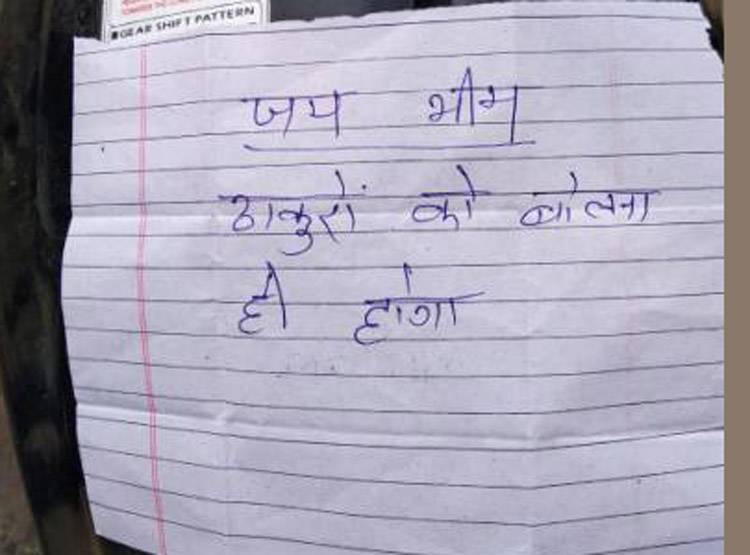पश्चिमी उत्तर प्रदेश के बुलंदशहर जिले में सौहार्द बिगाड़ने की कोशिश की गई है. बुलंदशहर जिला मुख्यालय से 45 किलोमीटर दूर नरसेना थाने के तहत आने वाले सबदलपुर गांव में कुछ असामाजिक तत्वों ने ठाकुर (राजपूत) समाज के घरों के बाहर धमकी भरे पर्चे फेंके हैं, जिनमें 'जय भीम ठाकुरों को बोलना ही होगा' लिखा हुआ था. इस घटना के बाद गांव में तनाव बना हुआ है.