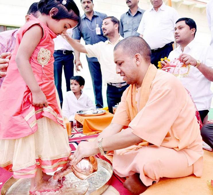 तस्वीरों में देखें कन्या पूजन करते सीएम योगी