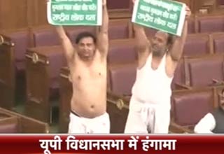 विधानसभा में हंगामे की शुरुआत करते हुए जहां पहले बीएसपी विधायकों ने नारेबाजी शुरू की, वहीं थोड़ी ही देर में वे मेज और कुर्सियों पर चढ़ गए. इस दौरान RLD विधायकों ने सारी हदें पार करते हुए सदन में ही अपनी शर्ट फाड़ी और हंगामा शुरू कर दिया. इससे पहले बीजेपी ने राज्यपाल बीएल जोशी के अभिभाषण का भी बहिष्कार किया.
