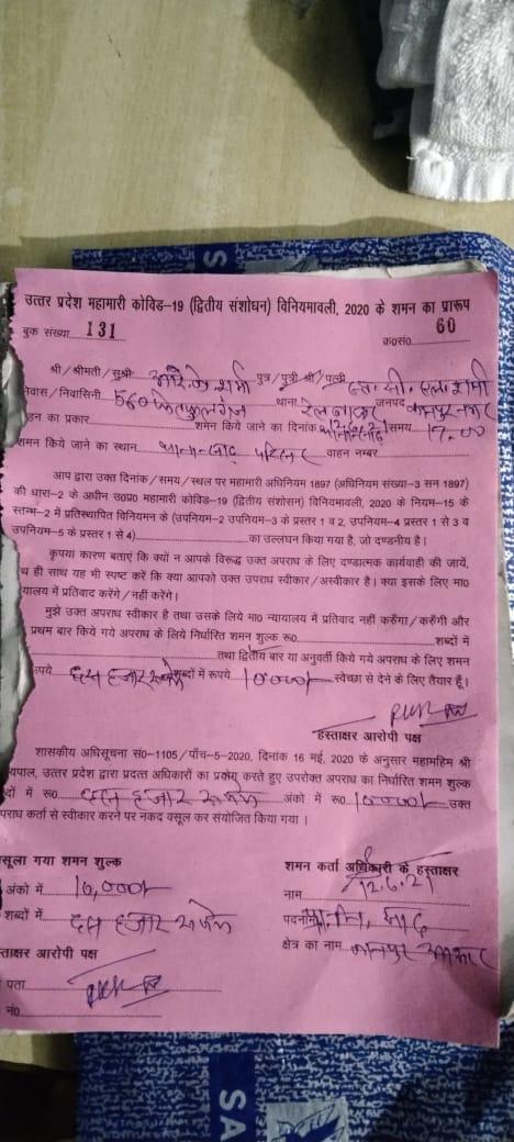 एडीजी साहब ने जेई आरके शर्मा का दूसरी बार मास्क न लगाने पर खुद अपने सामने दस हजार का चालान कटवा दिया. दरअसल एडीजी कानपुर जोन भानु भास्कर साढ थाने में बन रहे पुलिस भवन का निरीक्षण कर रहे थे. इस भवन का निर्माण पुलिस आवास निगम के जेई आरके शर्मा करवा रहे थे और खुद जेई आरके शर्मा ही निरीक्षण करवा रहे थे.