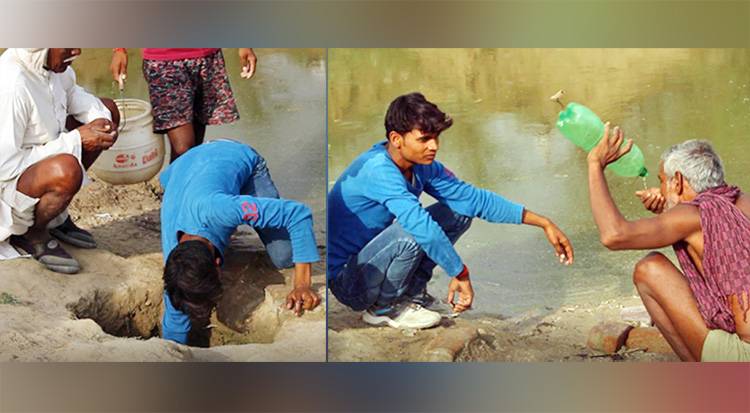 गांव के एक बुजुर्ग रामेश्वर कहते हैं कि, ‘इधर दलित बस्ती के जितने लोग हैं सभी गड्ढों से ही पानी पीते हैं. पहले नदी की तलहटी में छोटे-छोटे गड्ढे (चूए) बनाते हैं. क्योंकि नदी का पानी मीठा होता है तो उसकी वजह से थोड़ी खुदाई के बाद रिसकर इकट्ठा हुआ मीठा पानी निकल आता है, वही हम लोग पीते हैं. पानी नहीं मिलेगा तो क्या करेंगे पीना ही पड़ेगा.’