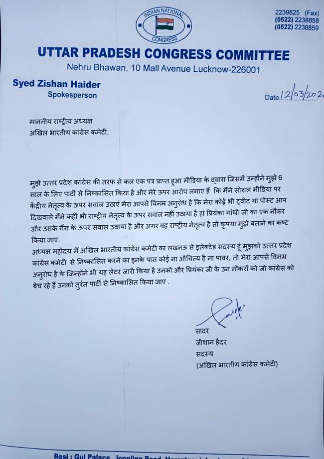 बता दें कि यूपी विधानसभा चुनाव में करारी हार के बाद कांग्रेस महासचिव प्रियंका गांधी के करीबियों को लेकर पार्टी में घमासान तेज हो गया है. कांग्रेस ने शुक्रवार को पार्टी के इलेक्ट्रानिक मीडिया और उर्दू प्रेस कोआर्डिनेटर जीशान हैदर को निष्कासित कर दिया. पार्टी नेतृत्व पर कथित तौर पर आपत्तिजनक टिप्पणी को लेकर उन्हें निकाला गया है.