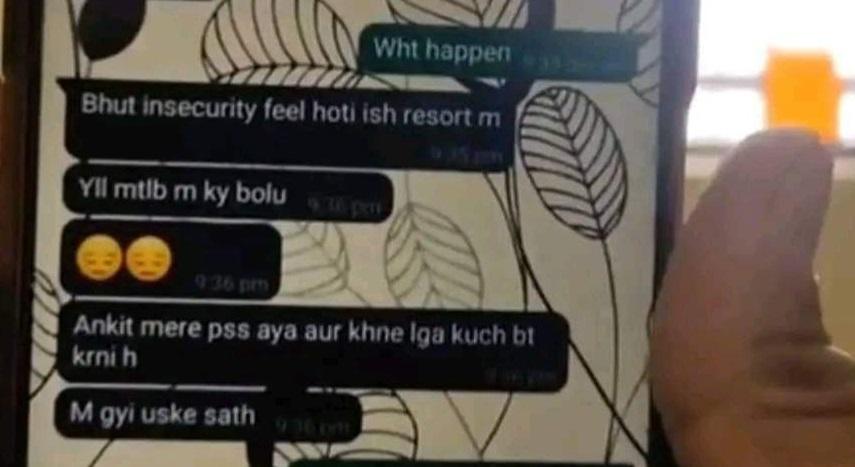 इसके साथ ही रिजॉर्ट में बतौर रिसेप्शनिस्ट काम कर रही अंकिता भंडारी ने आगे चैट पर लिखा, इस रिजॉर्ट में बहुत इनसिक्योर (सुरक्षित) महसूस होता है. अंकित गुप्ता (रिजॉर्ट मैनेजर) मेरे पास आया और बोला कुछ बात करनी है. फिर मैं उसके साथ गई. रिसेप्शन के कॉर्नर पर ले जाकर उसने बोला कि सोमवार को वीआईपी गेस्ट आ रहे हैं, तो उन्हें एक्स्ट्रा सर्विस चाहिए. मैंने कहा कि मैं क्या करूं? तो बोला कि तुम तो कह रही थीं कि स्पा वगैरह करोगी. मैंने कहा कि एक्स्ट्रा सर्विस की बात हुई थी, स्पा की बात कहां से आ गई. फिर वह बोला कि गंवारों वाली हरकतें मत करो, गेस्ट देख रहे हैं.