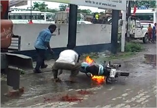 उत्तराखंड के ऋषिकेश में एक पेट्रोल पंप पर कांवड़ियों की भीड़ जमा थी. अचानक एक बाइक नजर आती है जिसमें आग लग गई है. दो लोग उसे घसीटते हुए पेट्रोल पंप से दूर ले जाते हैं. वहीं सड़क पर एक जगह बारिश का पानी भरा हुआ है. वे वहीं बाइक को गिराकर उस पर अपने हाथों से पानी फेंकने लगते हैं.