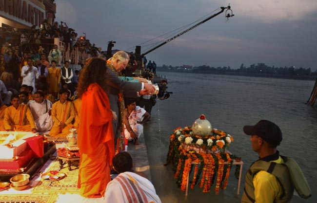 प्रिंस चार्ल्स और उनकी पत्नी बुधवार की शाम करीब 4:15 बजे विशेष विमान से जौलीग्रांट हवाई अड्डे पर पहुंचे, जहां उत्तराखंड के मुख्यमंत्री विजय बहुगुणा ने वरिष्ठ प्रशासनिक और पुलिस अधिकारियों के साथ उनकी अगवानी की. हवाई अड्डे से शाही दंपति सड़क मार्ग से सीधे ऋषिकेश के लिए रवाना हो गए, जहां उन्होंने परमार्थ निकेतन आश्रम पहुंचकर हवन और गंगा आरती में हिस्सा लिया. आरती में भाग लेने के बाद प्रिंस और उनकी पत्नी टिहरी जिले के नरेंद्रनगर में स्थित होटल में रात्रि विश्राम के लिए पहुंचे.