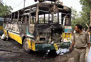 एक ब्लू लाइन बस ओवरब्रिज से टकरा गई, जिसमें छह लोग घायल हो गए. रूट नंबर 568 की बस नांगलोई से सफदरजंग जा रही थी.