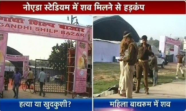 नोएडा स्टेडियम में बुधवार सुबह 26 साल के एक युवक की लाश मिलने से सनसनी फैल गई. युवक की लाश फंदे में लटकी हुई स्टेडियम के लेडीज टॉयलेट में मिली.