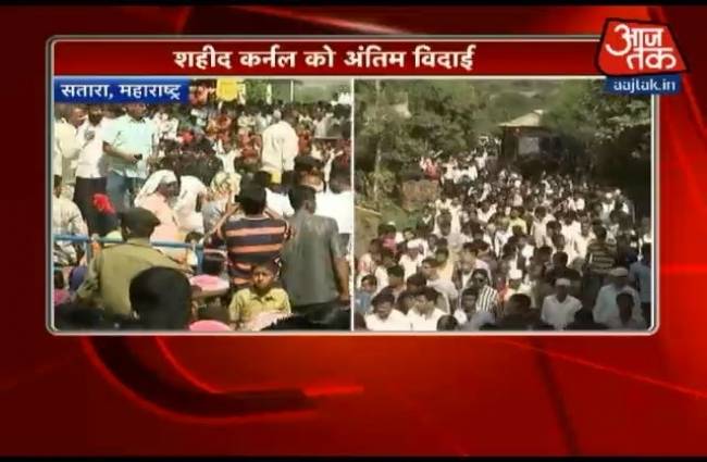 उत्तरी कश्मीर के कुपवाड़ा जिले में नियंत्रण रेखा के पास आतंकियों से लड़ते हुए शहीद हुए 41 राष्ट्रीय राइफल्स के कमांडिंग ऑफिसर कर्नल संतोष महादिक को बुधवार को सेना ने पुष्पांजलि अर्पित की. शहीद महादिक को गार्ड ऑफ ऑनर दिया गया.