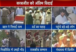 पाकिस्तान की जेल में कैदियों के बर्बर हमले के बाद दम तोड़ने वाले सरबजीत सिंह का पंजाब के भिखीविंड गांव में राजकीय सम्मान के साथ अंतिम संस्कार किया जा रहा है. इस बीच कर्नाटक में चुनाव प्रचार कर रहे कपिल सिब्बल का बयान आया है कि अगर आप बातचीत के सारे रास्ते बंद कर देते हैं तो फिर सुझाव को रास्ते में बंद हो जाते हैं.