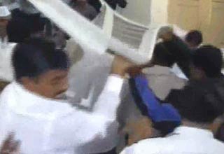 महाराष्ट्र के मुख्यमंत्री के सामने कोल्हापुर में नगर पालिका के प्रचार सभा में मेयर और विधायक भिड़ गए और मुख्यमंत्री देखते रह गए.