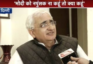 बीजेपी के पीएम इन वेटिंग नरेंद्र मोदी पर विदेश मंत्री सलमान खुर्शीद के बयान से हंगामा मचा हुआ है. आज तक से बात करते हुए सलमान खुर्शीद ने कहा कि मोदी के लिए नपुंशक शब्द कहकर उन्होंने कोई गलती नहीं की. खुर्शीद ने कहा कि बीजेपी ही मोदी से डर गई है, कांग्रेस में कोई घबराहट नहीं है.