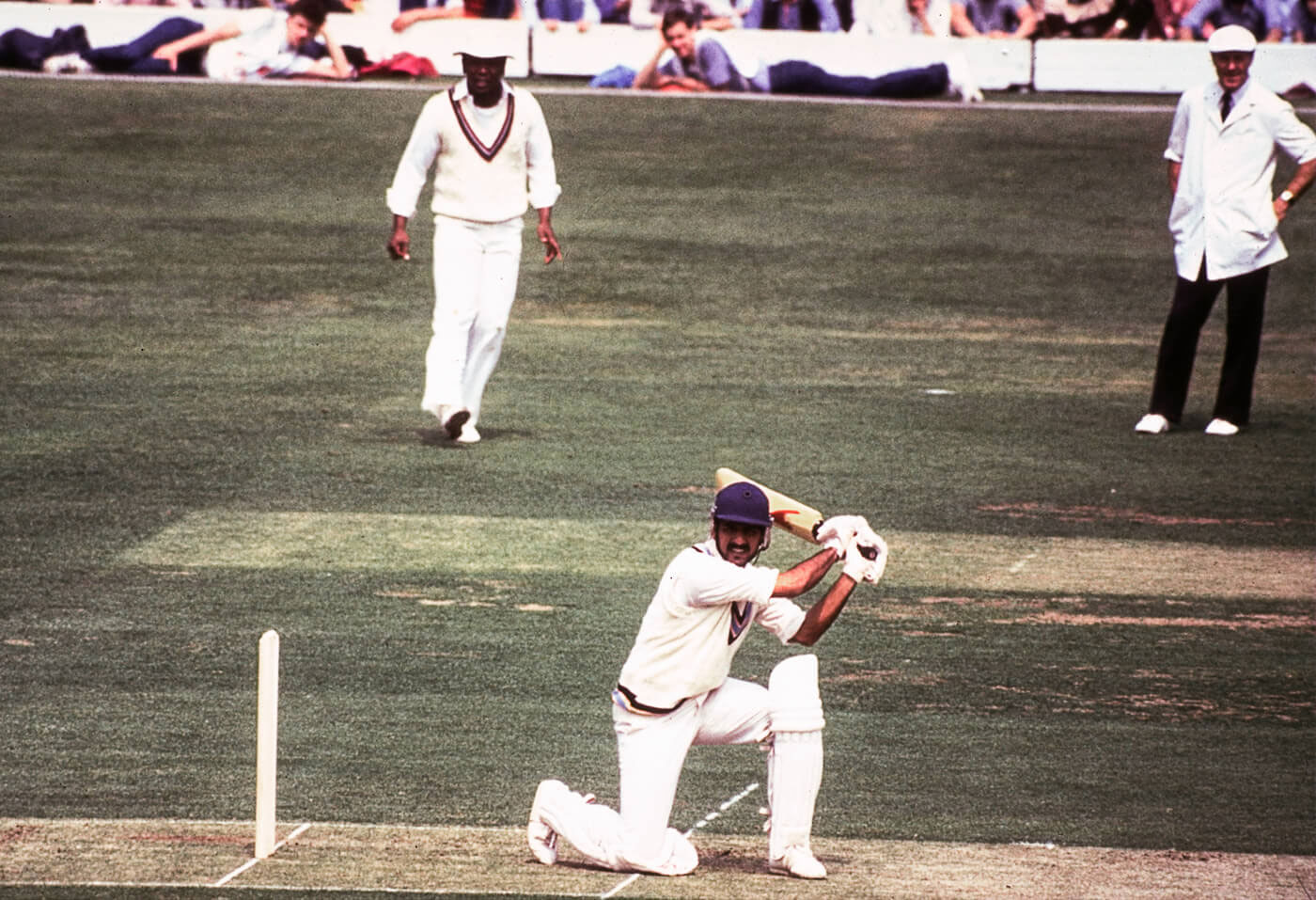 थोड़ी ही देर में मदन लाल को एक ओवर में तीन चौके पड़े. तीनों विव के बल्ले से. एक चौका मिडविकेट की दिशा में, दूसरा एक्स्ट्रा कवर और तीसरा पॉइंट की दिशा में. ओवर के बीच में, जब गेंद बाउंड्री से मदन लाल के पास लाई जा रही थी, पम्मी (सुनील गावस्कर की पत्नी, मार्शनील) ने आवाज़ देकर डीप स्क्वायर लेग पर फ़ील्डिंग कर रहे संदीप पाटिल को बाउंड्री पर बुलाया. पम्मी ने कहा कि वो, अन्नू लाल (मदन लाल की पत्नी) और रोनी (कपिल देव की पत्नी), तीनों शॉपिंग के लिये जा रही थीं. पम्मी ने सुनील गावस्कर को संदेसा भिजवाया कि मैच ख़तम होने के बाद सुनील उन्हें सेंट जॉन वुड्स में मिलें. तीनों महिलाएं हार तय मान चुकी थीं और आगे का प्लान बनाकर उसपर अमल करने निकल पड़ीं. इतने में ही डेसमंड हेन्स चलते बने. उन्हें मदन लाल ने ही आउट किया. पार्टनरशिप तो टूट चुकी थी लेकिन कसाई अब भी मौजूद था.
