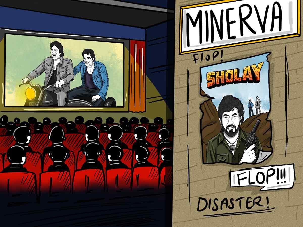मिनर्वा थिएटर के माहौल में आशा की बिजलियां दौड़ रही थीं. 'शोले' दहाड़ते हुए बड़े पर्दे पर पहुंची- जय वीरू अपने घोड़ों पर सवार रामगढ़ में टापें भर रहे थे, बिना बाजुओं का धड़ लिए ठाकुर बदले की ललकार भर रहा था, गब्बर गुर्रा रहा था. 70mm विजुअल्स की चकाचौंध फैली हुई थी, बर्मन का स्कोर गरज रहा था, फिर भी दर्शकों में सन्नाटा पसरा हुआ था. ना तालियां, ना सीटियां. मिनर्वा, एक थिएटर की बजाय शोक संतप्त भीड़ से भरा एक श्मशान लग रहा था.