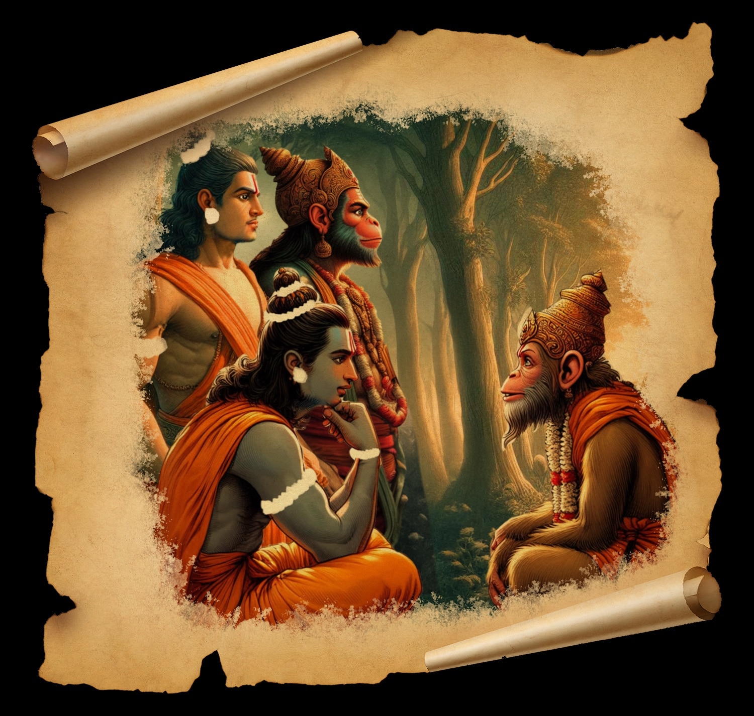 उन्होंने सुग्रीव के पास जाकर चरणों में सिर नवाया. (साम, दाम, दंड, भेद) चारों प्रकार की नीति कहकर उन्हें समझाया. हनुमानजी के वचन सुनकर सुग्रीव ने बहुत ही भय माना. और कहा- विषयों ने मेरे ज्ञान को हर लिया. अब हे पवनसुत! जहां-तहां वानरों के दूत रहते हैं, वहां दूतों के समूहों को भेजो. और कहला दो कि एक पखवाड़े में (पंद्रह दिनों में) जो न आ जाएगा, उसका मेरे हाथों वध होगा. तब हनुमानजी ने दूतों को बुलाया और सबका बहुत सम्मान करके- सबको भय, प्रीति और नीति दिखलाई. सब बंदर चरणों में सिर नवाकर चले. इसी समय लक्ष्मणजी नगर में आए. उनका क्रोध देखकर बंदर जहां-तहां भागे. तदंतर लक्ष्मणजी ने धनुष चढ़ाकर कहा कि नगर को जलाकर अभी राख कर दूंगा. तब नगरभर को व्याकुल देखकर बालीपुत्र अंगदजी उनके पास आए. अंगद ने उनके चरणों में सिर नवाकर विनती की, तब लक्ष्मणजी ने उनको अभय बांह दी (भुजा उठाकर कहा कि डरो मत).