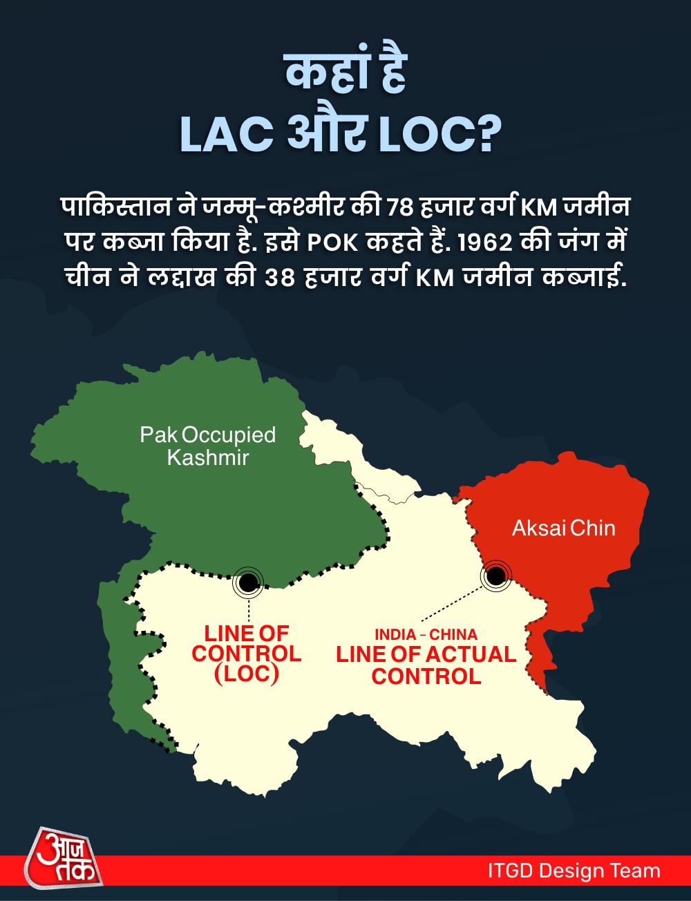 आज़ादी के बाद भारत ने पांच जंग लड़ी. एक चीन से 1962 में. चार पाकिस्तान से- 1947, 1965, 1971 और 1999. पाकिस्तान को हर बार धूल चटाई. चीन ने एकतरफा युद्ध विराम कर दिया था. पाकिस्तान के साथ इंटरनेशनल बॉर्डर 2545 किलोमीटर और लाइन ऑफ कंट्रोल (LOC) 778 किलोमीटर है. जम्मू-कश्मीर में 110 किलोमीटर की एक्चुअल ग्राउंड पोजिशन लाइन है. ये असल में सियाचिन के पास है. पाकिस्तान को विरासत में आतंकवाद, घुसपैठ मिली है. पाकिस्तान ने POK में चीन को सड़क बनाने दे रहा है. साथ ही ग्वादर पोर्ट चीन को सौंप रखा है.