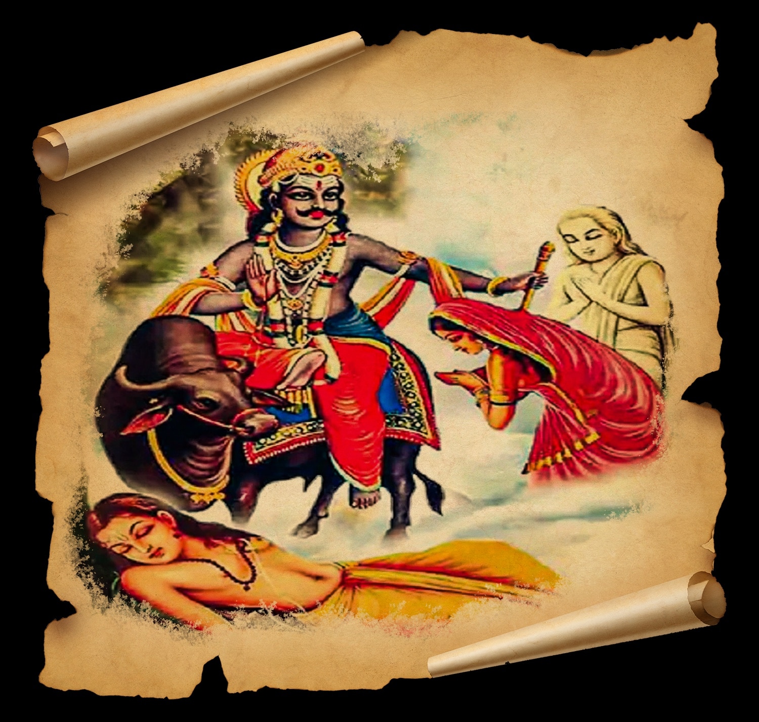 थोड़ी देर में ही उसने भैंसे पर चढ़े, काले रंग के सुन्दर अंगोंवाले, हाथ में फांसी की डोरी लिए हुए, सूर्य के समान तेजवाले एक भयंकर देव-पुरुष को देखा. उसने सत्यवान के शरीर से फांसी की डोरी में बंधे हुए अंगूठे के बराबर पुरुष को बलपूर्वक खींच लिया. सावित्री ने अत्यन्त व्याकुल होकर आर्त स्वर में पूछा- हे देव! आप कौन हैं और मेरे पति को कहां ले जा रहे हैं? उस पुरुष ने उत्तर दिया- हे तपस्विनी! तुम पतिव्रता हो, अत: मैं तुम्हें बताता हूं कि मैं यम हूं और आज तुम्हारे पति सत्यवान की आयु क्षीण हो गई है, इसलिए मैं उसे ले जा रहा हूं. तुम्हारे सतीत्व के तेज के सामने मेरे दूत नहीं आ सके, इसलिए मैं स्वयं आया हूं. यह कहकर यमराज दक्षिण दिशा की तरफ चल पड़े.