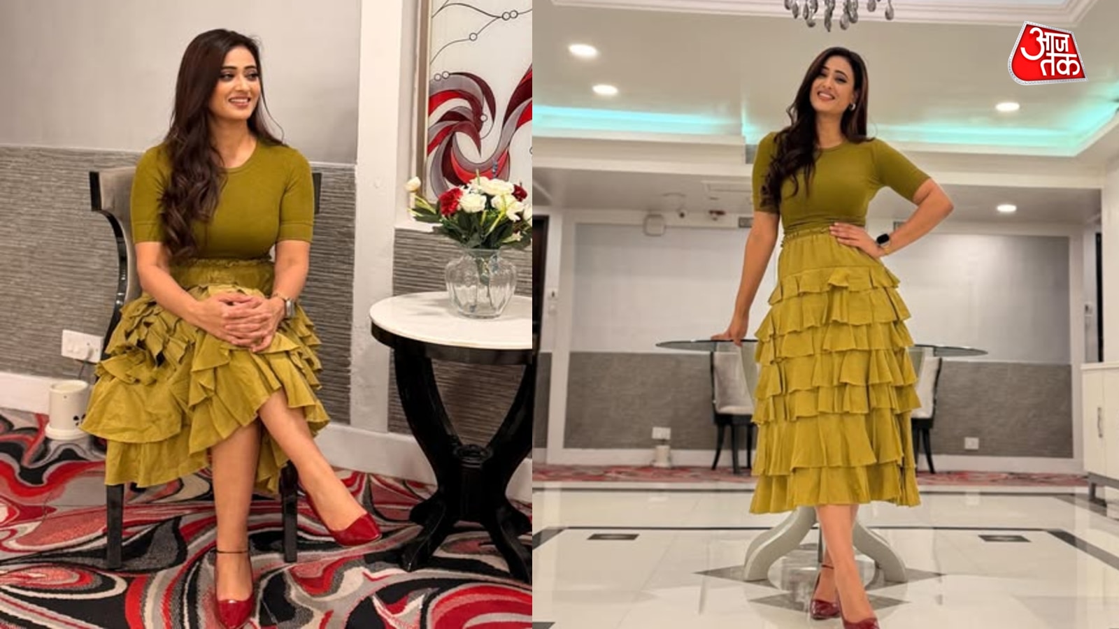श्वेता की मल्टी-लेयर्ड रफल स्कर्ट है जिसमें कई स्टेप्स और फ्रिल्स दिए गए हैं जो चलते समय काफी अच्छे लगते हैं. रफल्स की वजह से इस सिंपल से आउटफिट में एक हैवी और डिजाइनर टच जुड़ गया है जो काफी ट्रेंडी लग रहा है.