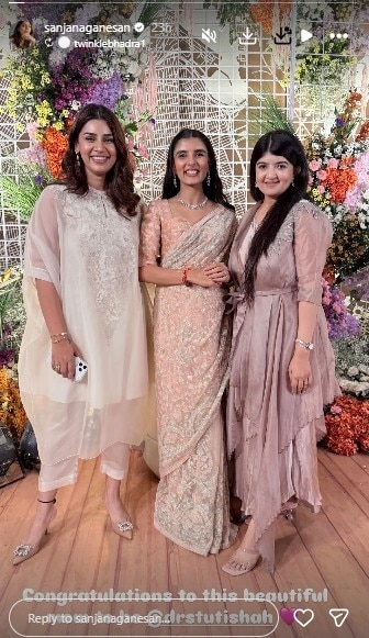 भारतीय क्रिकेटर जसप्रीत बुमराह की पत्नी और मशहूर स्पोर्ट्स प्रेजेंटर संजना गणेशन रियल लाइफ में बेहद ग्लैमरस हैं. संजना हमेशा ही अपने फैशनसेंस के लिए जानी जाती हैं और एक बार फिर अपने स्टाइलिश अंदाज को लेकर चर्चा में आ गई हैं. हाल ही में वह अपनी एक दोस्त के बेबी शॉवर फंक्शन में शामिल हुईं, जहां उनका सॉफ्ट और एलिगेंट लुक लोगों को काफी पसंद आया. सोशल मीडिया पर भी उनकी तस्वीरें तेजी से वायरल हो रही हैं.