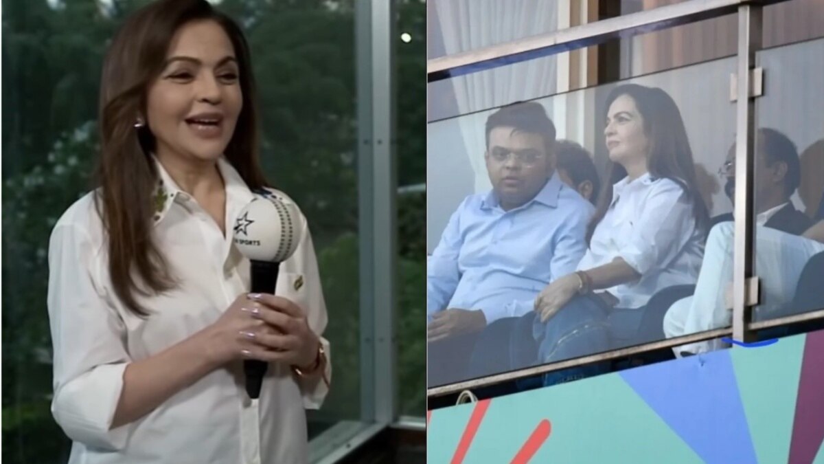 मैच से जुड़े नीता अंबानी के कई वीडियो और फोटोज वायरल सामने आए. इनमें एक वीडियो में वो स्टेडियम की गैलरी में खड़े होकर तिरंगा लहराती दिखीं. इस दौरान नीता अंबानी का काफी सिंपल अंदाज दिखा. उन्होंने इस मौके के लिए एलिगेंट लुक का चुनाव किया था.