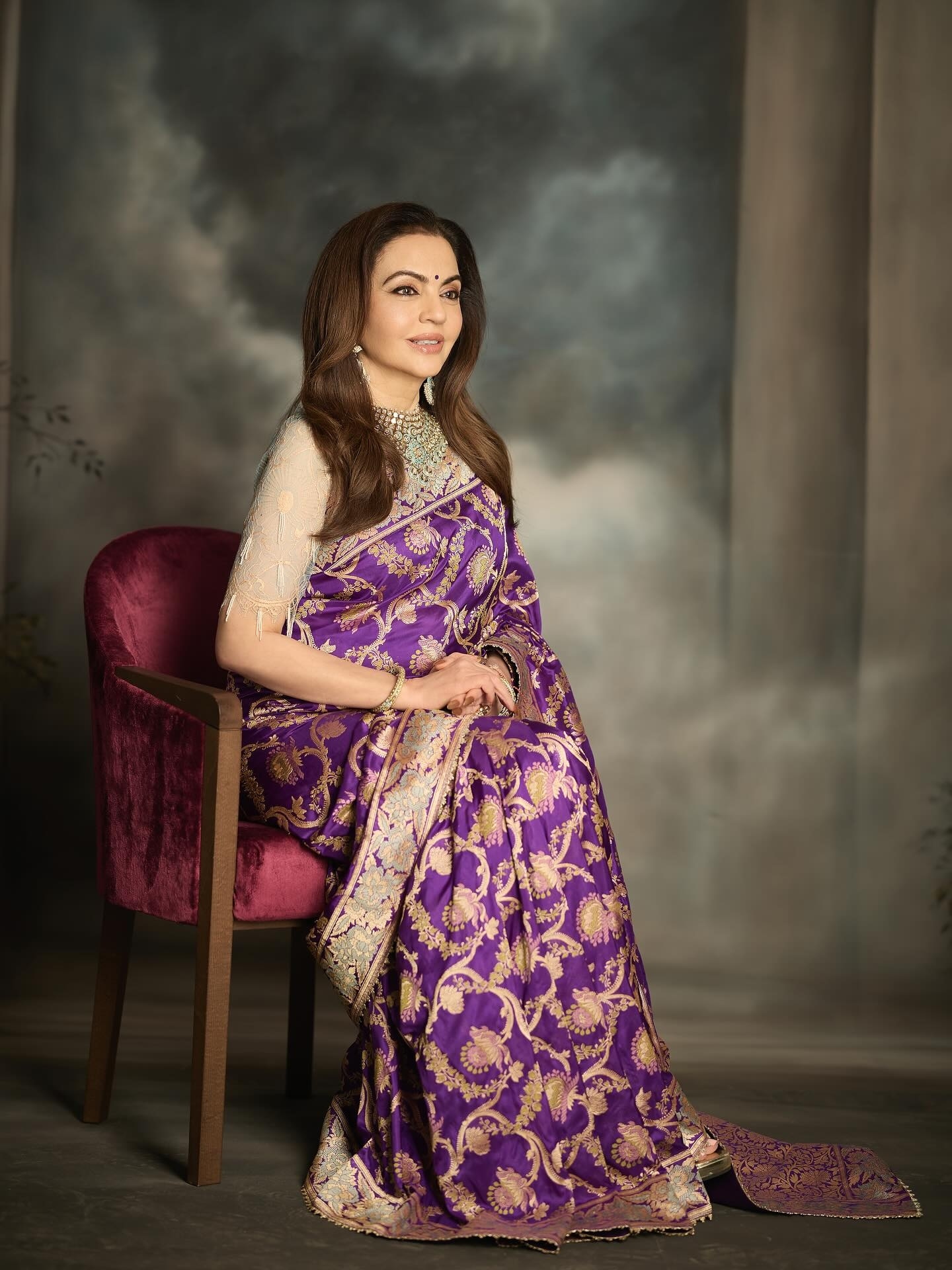 इस इवेंट के लिए मिसेज अंबानी ने डार्क पर्पल कलर की बनारसी साड़ी चुनी थी, जिसे बारीक कारीगरी और मॉडर्न ब्लाउज के कॉम्बिनेशन ने एलीगेंट बनाया था. आइए उनकी इस साड़ी के बारे मे डिटेल जानते हैं.