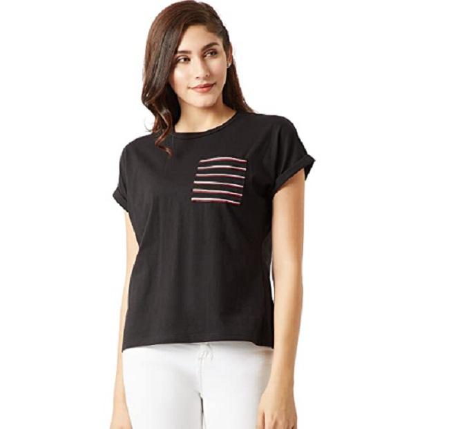 गर्मियों में टी-शर्ट एक सबसे अच्छा ऑप्शन है. ब्लैक कलर लगभग सभी का फेवरेट होता है. ब्लैक कलर की यह प्योर कॉटन फैब्रिक से बनी T-Shirt देखने में काफी ज्यादा अट्रैक्टिव लगती है. इसकी कीमत महज 438 रुपये है. वेबसाइट पर ढुंढने के लिए आपको बस Miss Chase Women's Super Soft Round Neck Continuous Short Sleeves Cotton Solid Twill Pocket Regular Basic T-Shirt टाइप करना हैं.
