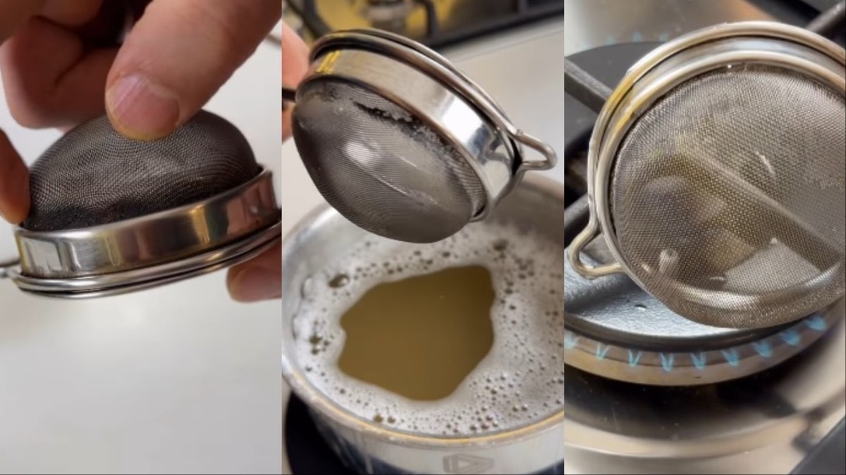 स्टील वाली चाय की छलनी के उस काले को साफ करने के लिए आप छलनी के इस गंदे काले हिस्से को गैस पर थोड़ी देर जला लें, क्योंकि जलने के बाद वो आसानी से निकल जाता है.