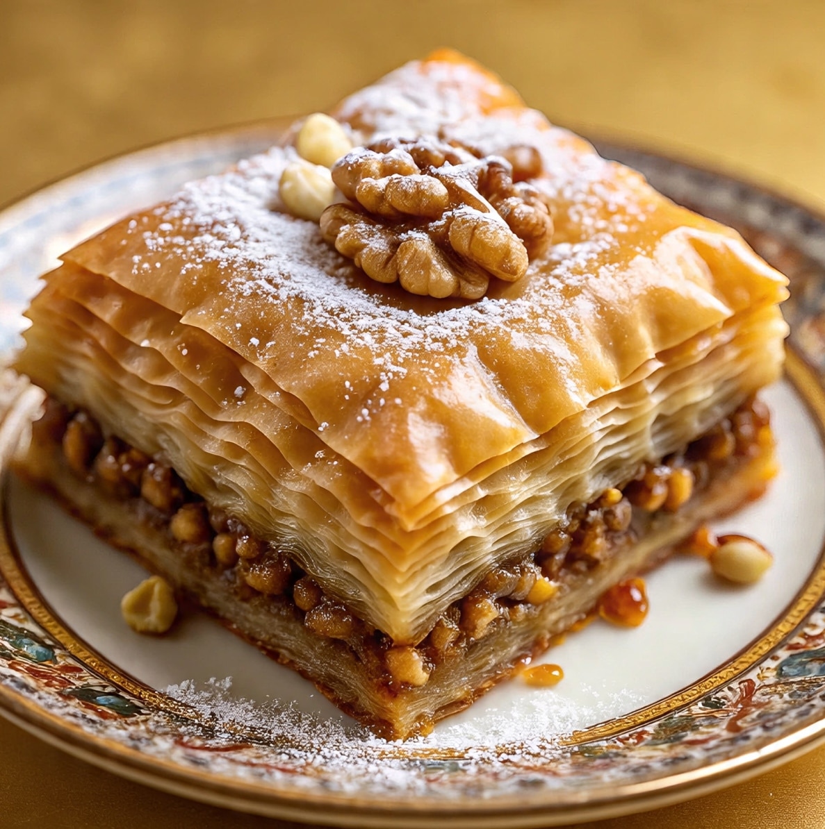 बकलावा एक मीठी, परतदार पेस्ट्री है जो फिलो आटे की परतों से बनाई जाती है. इसमें कटे हुए ड्राईफ्रूट्स भरे जाते हैं और फिर इसे सिरप या शहद में भिगो दिया जाता है.