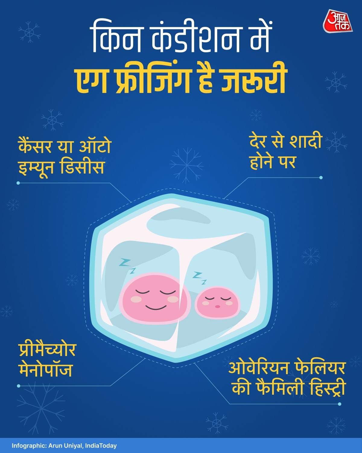 आखिर में वो बताती हैं कि अंडाणु जमाने के बाद भ्रूण में कोई आनुवांशिक समस्या न हो, इसके लिए PGD (preimplantation genetic diagnosis) कराना चाहिए ताकि स्वस्थ बच्चे का जन्म हो सके. egg freezing एक सुरक्षित और प्रभावी तकनीक है. यह उनके लिए फायदेमंद है जो सही पार्टनर ना मिल पाने के कारण लेट मैरिज कर रही हैं, करियर को लेकर ज्यादा फोकस्ड हैं, या फिर किसी मेडिकल कंडीशन से जूझ रही हैं.