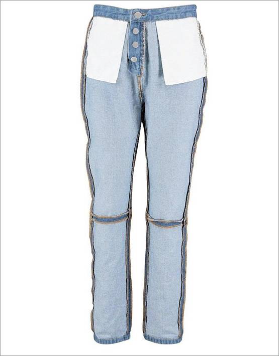 इस जींस पर स्टिचिंग साफ दिखती है और अंदर की पॉकेट भी बाहर ही है. इस डिजाइन को देखकर ऐसे ही लगता है जैसे जल्दबाजी और अंधेरे में किसी ने उल्टी जींस पहन ली हो.