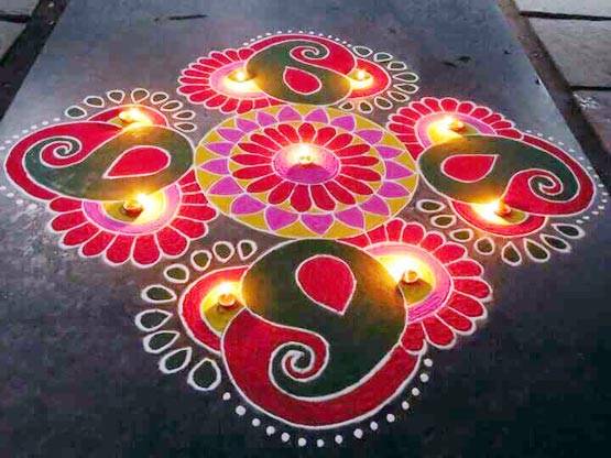 10. रंगोली बनाने के बाद उसे दीप या मोमबत्ती से जरूर रोशन करें.