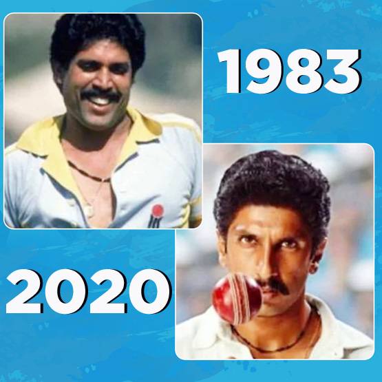 टीम इंडिया को 1983 में विश्व चैंपियन बनाने वाले कपिल देव की बायोपिक '83' अगले साल रिलीज होगी. इस फिल्म में बॉलीवुड स्टार रणवीर सिंह कपिल देव के किरदार में नजर आएंगे. कपिल देव के रूप में रणवीर का फर्स्ट लुक भी आ चुका है. फिल्म में कपिल देव जैसा दिखने के लिए रणवीर ने जबरदस्त ट्रांसफॉर्मेशन किया है.