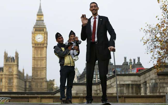 सोचिए क्या नजारा होगा, जब दुनिया का सबसे छोटे कद का व्यक्ति सबसे लंबे कद वाले व्यक्ति से मिले. चंद्र बहादुर डांगी ने अपने भतीजे दोलख डांगी के साथ मिलकर सुल्तान कोसेन से मुलाकात की. गिनीज वर्ल्ड रिकॉर्ड्स डे (13 नवंबर) के मौके पर लंदन में इन दोनों की मुलाकात हुई.