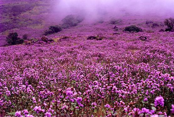 यहां की पहाड़ियां 12 साल में एक बार खिलने वाले नीलकुरिंजी फूलों से ढक